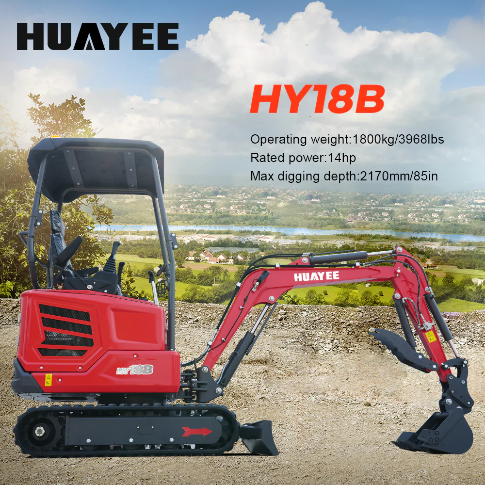 Mini Excavator with 14hp Kubota Engine | Hydraulic Thumb, Side Swing & Canopy | HUAYEE HY18B