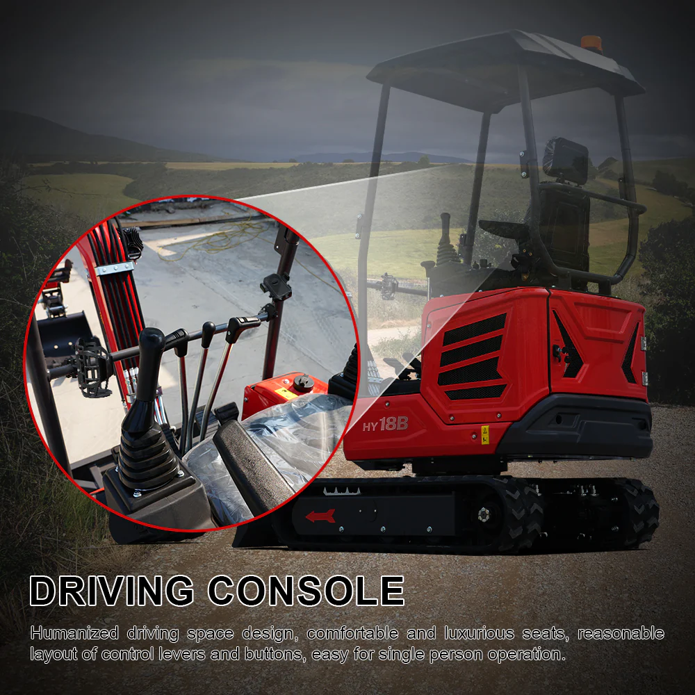 HUAYEE HY18B Mini Excavator with 14hp Kubota Engine | Hydraulic Thumb, Side Swing & Canopy