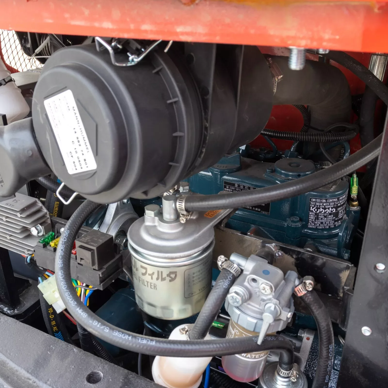 • Small but powerful Kubota D902 engine, a vertical, water-cooled, 3-cylinder, 4-cycle IDI diesel engine with a capacity of 20.4 HP at 3600RPM