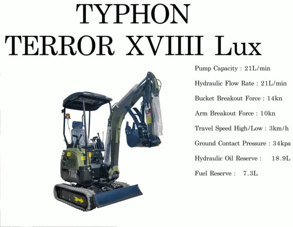 Introducing the TYPHON TERROR XVIII Rugged Mini Excavator, a pinnacle of luxury and efficiency in excavation. Crafted by TYPHON, this excavator is not just a machine; it’s a statement.